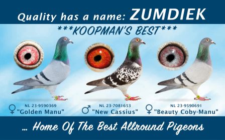 still related to this famous pair. The Koopman pigeons also score like no other in the international one-loft races... high quality at an international level! Children from the very best Koopman pigeons strengthen our breeding loft, such as: